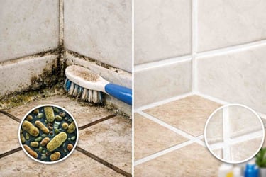 Grout that has gone from white or light grey to dark brown or black can often be restored close to its original colour with professional cleaning. The difference is immediately visible.