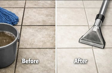 Every time you mop, dirty water gets pushed into grout lines where it sits and dries. Over time that builds up into the dark, discoloured grout that mopping alone can never fix. Professional cleaning extracts it properly.