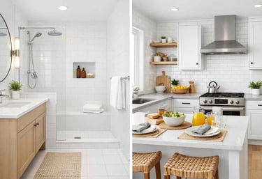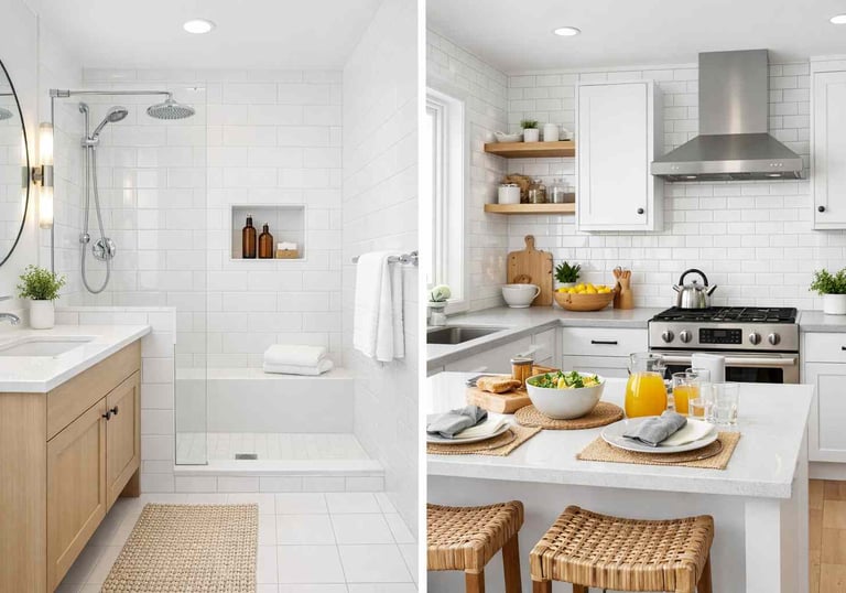 Clean, bright tiles and white grout lines transform the look of a bathroom, kitchen, or living area. It is one of the most noticeable improvements you can make to a room without renovating.