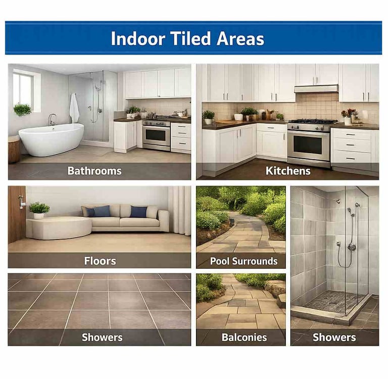 Our tile and grout cleaning service covers all tiled areas across North Brisbane homes and commercial properties, including: